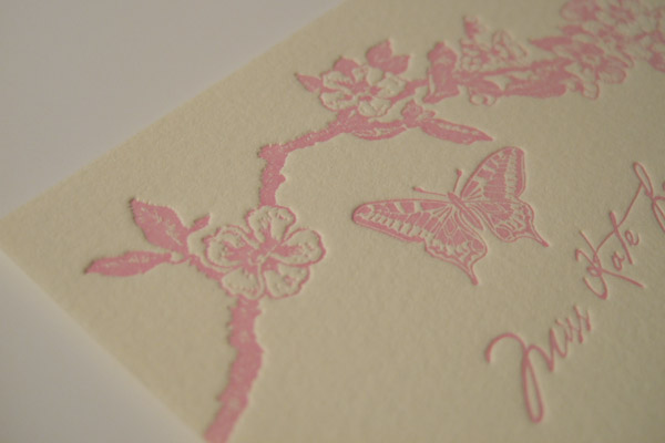 Wedding Stationery printed pantone 217 on somerset white 100% cotton, 300gsm