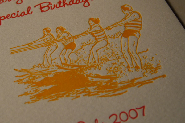 Beach Party Invitation printed pantones 485 & 108 on stardream opal, 350gsm