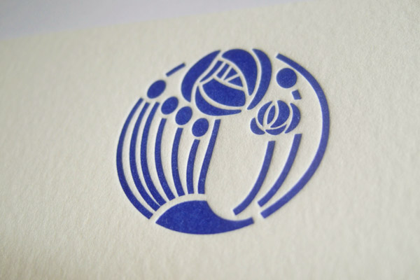 Stationery printed pantone 072 on crane's lettra fluorescent white 100% cotton, 300gsm