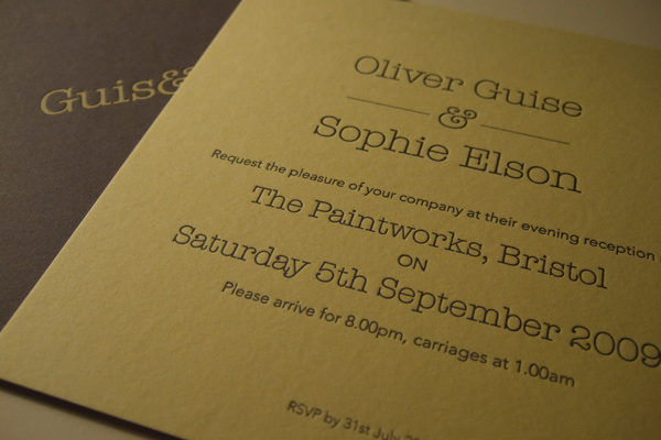 Wedding Invitations & Thank You Cards printed dark grey ink with lemon foil on 540gsm colorplan duplexed dark grey/sorbet yellow
