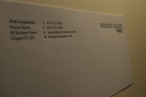 Compliment Slips & Business Cards printed black on 130gsm pristine white colorplan and 540gsm pristine white/ebony duplexed colorplan