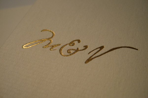 gold foiled on conqueror high white laid, 300gsm