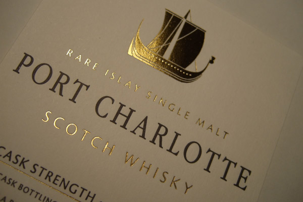 Whisky Label printed pantone cool grey 7 & gold foiled on conqueror high white wove, 120gsm