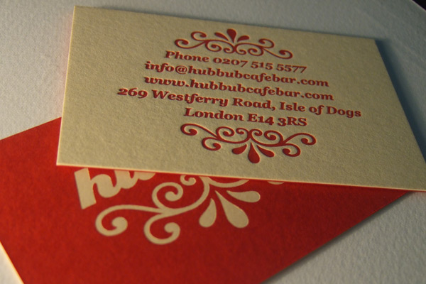 Business Card printed special ink mix with cream foil on colorplan duplex china white/vermillion, 540gsm
